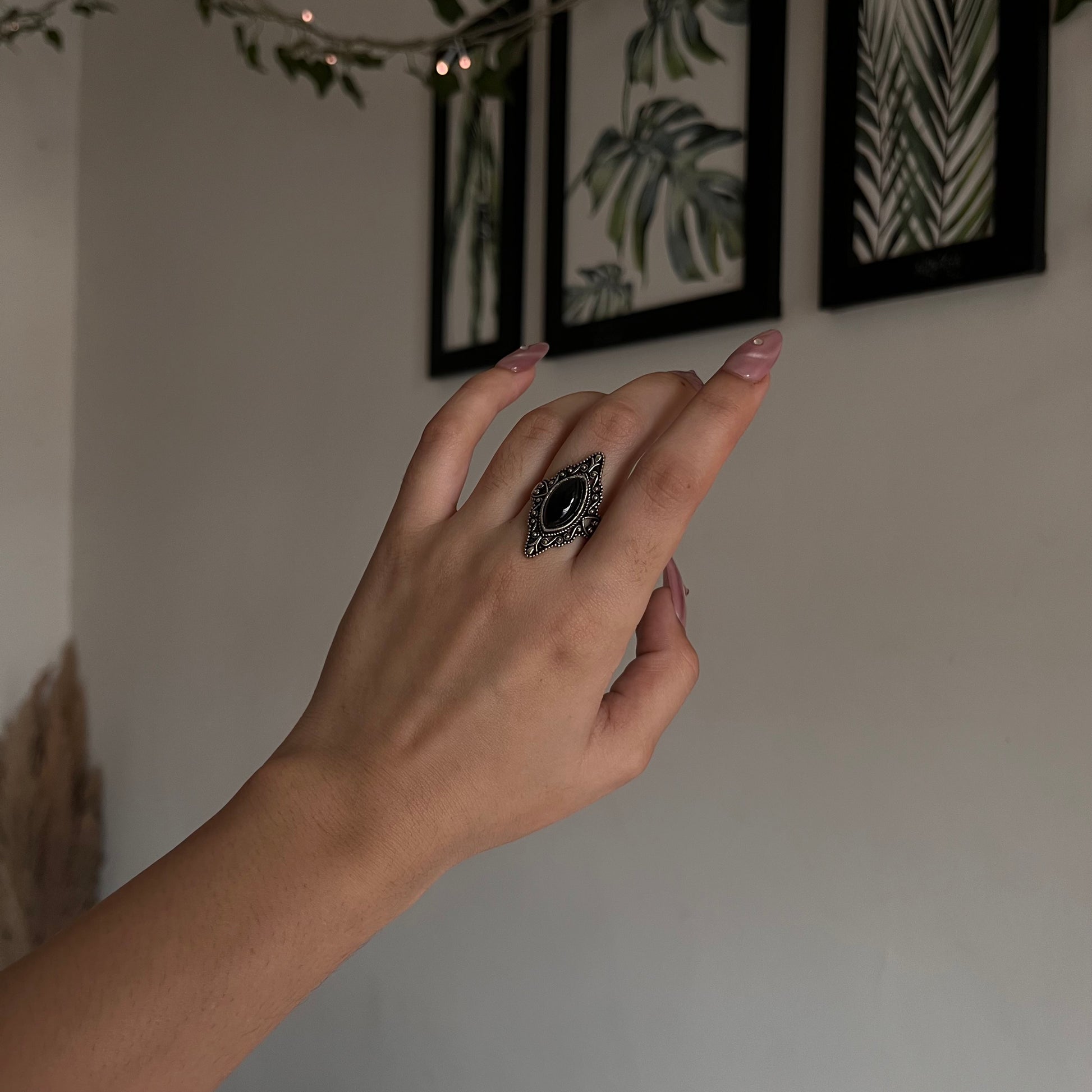 Introducing Claw, a bold antique ring with authentic onyx stones.