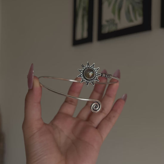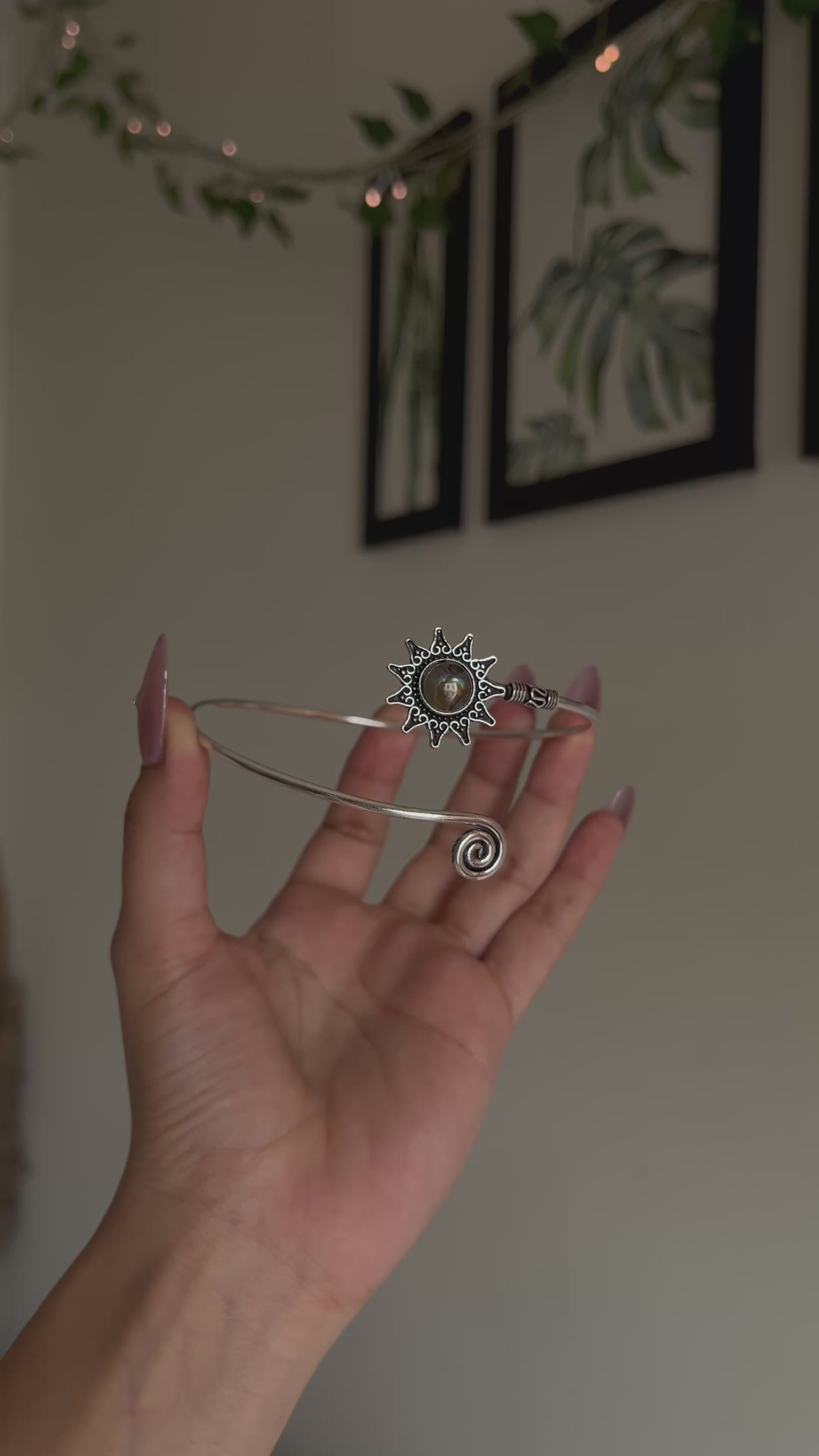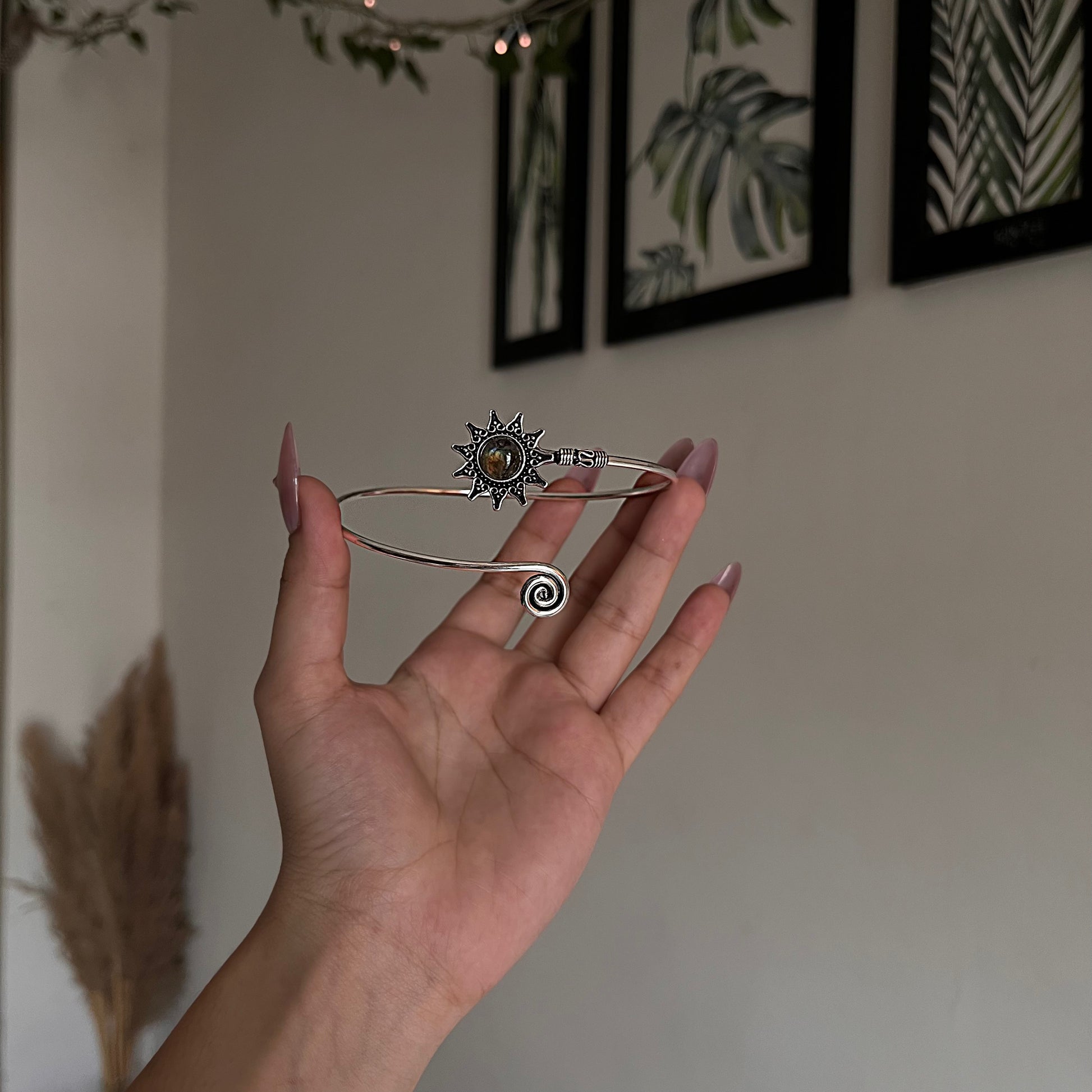 This enchanting piece blends silver-plated brass with a real labradorite stone that sparkles delightfully in the light. Its unique flair makes it a playful and adaptable statement accessory, perfect for adding a splash of brightness to any outfit. Plus, it’s fully adjustable to fit just right.